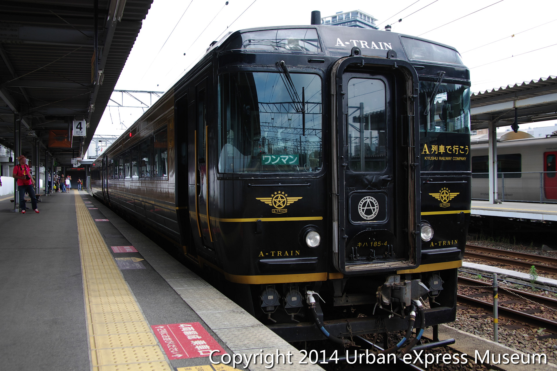 熊本駅で発車を待つA列車で行こう1号を撮影。ホームからはジャズナンバーの「Take the "A" Train」が流れ、この列車が居るだけで雰囲気がガラッと変わります。