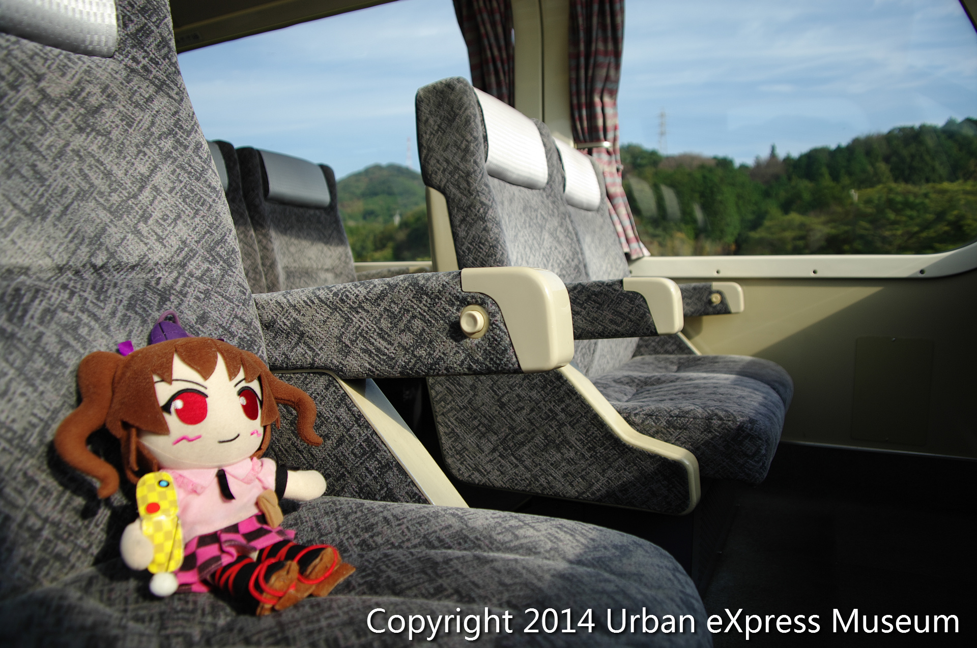 ちなみに、国府を発車したばかりの後面展望ということもあり展望席はガラガラの状態です。そうじゃないとぬいぐるみ出して撮影なんて恥ずかしいことできませんし(笑)