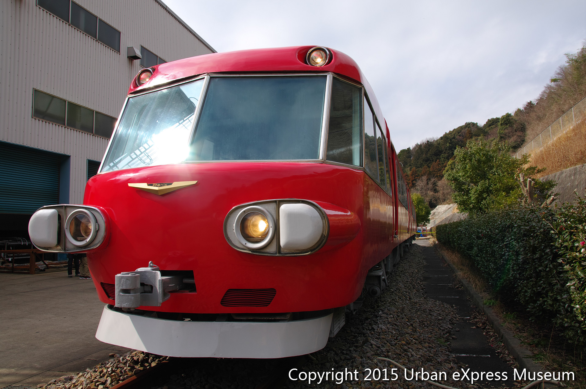 舞木検査場に静態保存されている7001号。 登場当初の顔であるフェニックスエンブレムを掲出した前面になっています。